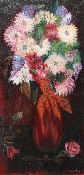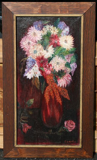 LERCH, Franz, (Austria, 1895-1977): Floral Still Life, OIL/Canvas, 28'' x 14'', signed, encased in period oak frame, 32 1/2'' x 19 1/2''.
