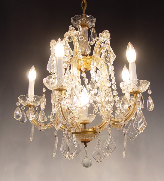 DIMINUTIVE MARIA TERESA CRYSTAL CHANDELIER: 5 lights, measures approx 22 1/2'' h. x 20'' dia.