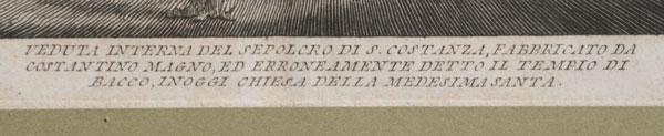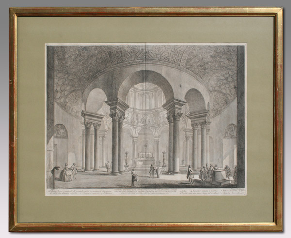PIRANESI, Giovanni, (Italian, 1720-1778): ''Veduta interna del sepolcro di S. Costanza'', Engraving, 16 1/2'' x 21 3/4'' sight size, gold gilt frame with minor wear, 24'' x 30'', not examined out of the frame.