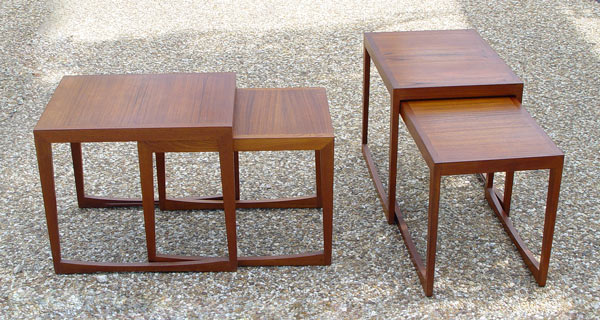 PAIR DANISH MODERN NESTING TABLES: Each pair consists of 2 tables. Larger measures 20 1/2'' h. x 23 1/2'' x 17 3/4''