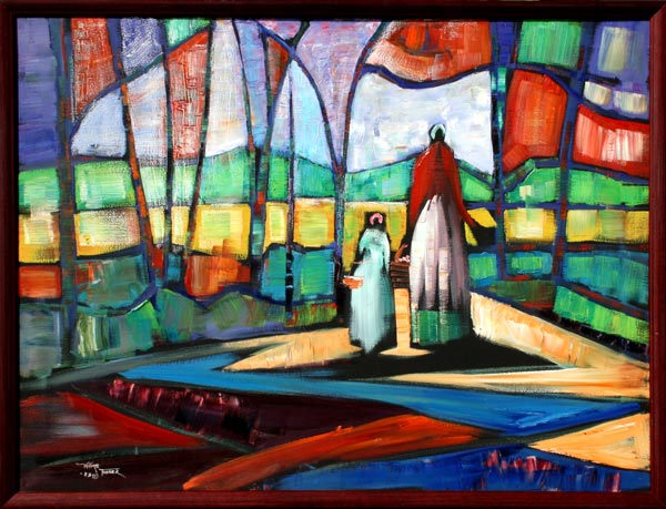 TOLLIVER, William, (American, 1951-2000): Abstract Landscape with Figures, OIL/canvas, 36'' x 48'', signed and dated 82, wooden frame, 40'' x 52''.