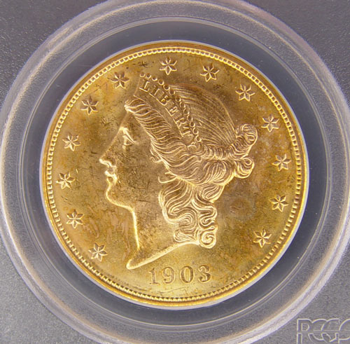 1903 PCGS MS63 $20 GOLD EAGLE: Sold with original paperwork from Swiss America in 1995.