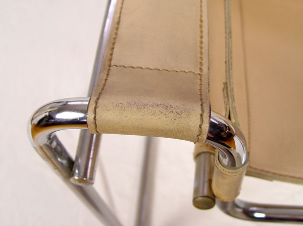 CONDITION: Note pepper surface rust to chrome, staining to leather.