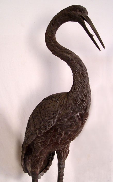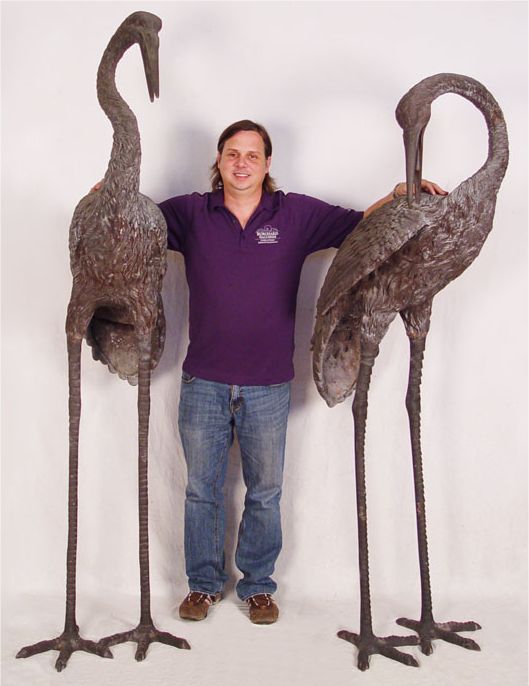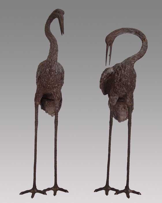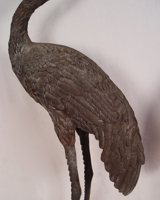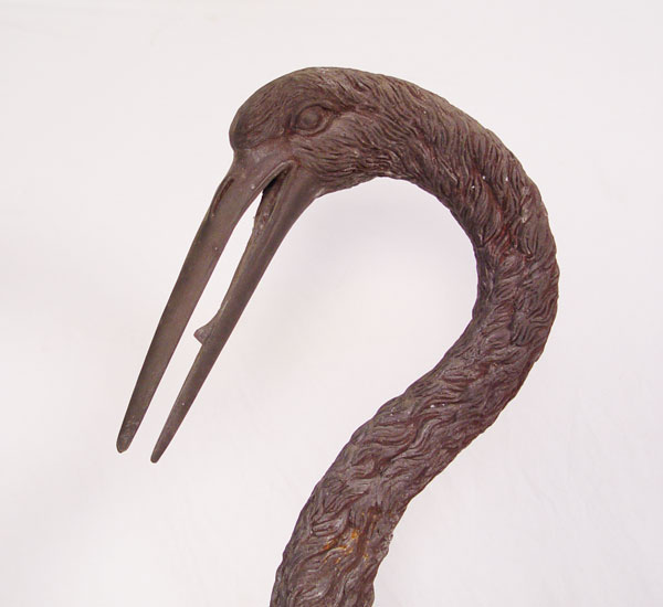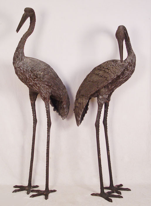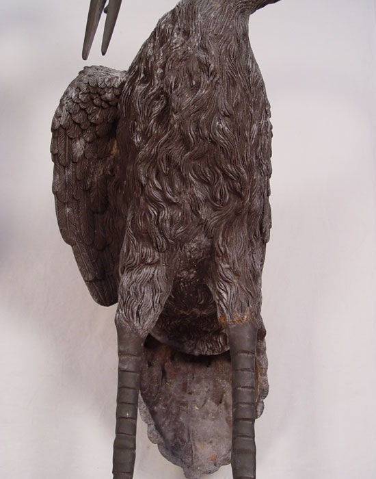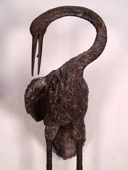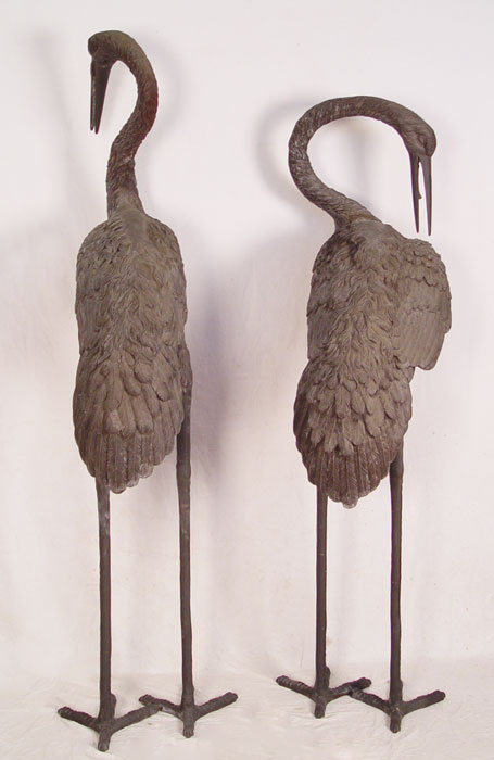 OVER 6 FT TALL CAST METAL HERON BIRD STATUES: Larger of the two measures approx. 80 1/2'' x 33'' x 22 1/2''. If these are to big, the next lot 193a is a bit smaller.