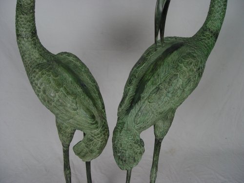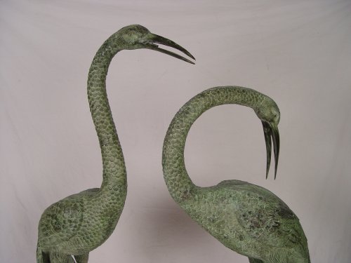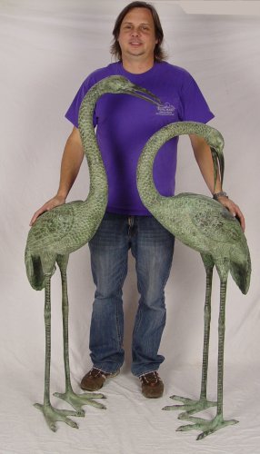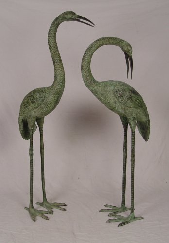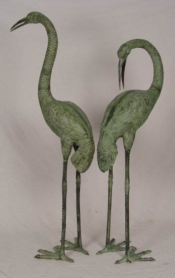 PAIR OF BRONZED METAL HERON STATUES: Largest measures approx. 57 1/2'' h. x 24'' x 15''