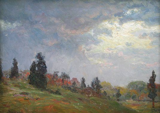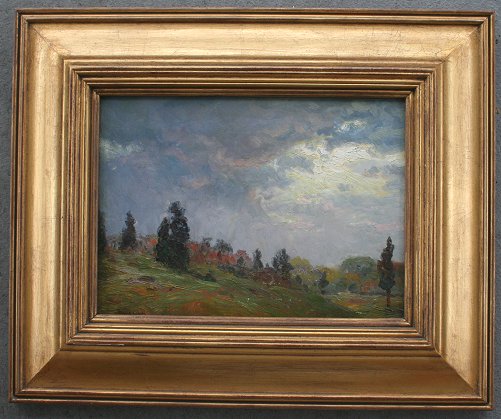 ENNEKING, John Joseph, (American, 1841-1916): Sunlit Landscape, OIL/Board, 10'' x 13 3/4'', signed, Fine Contemporary Gilded Impressionist frame, 18'' x 21 1/2''.