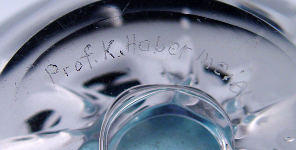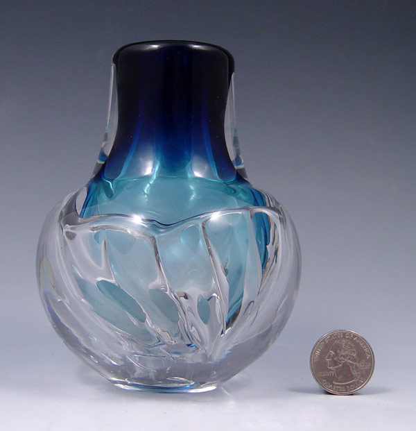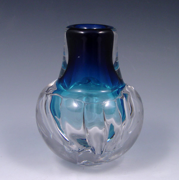 KONRAD HEBERMEIER MID CENTURY ART GLASS VASE: Blue fades to clear, signed Prof. K Hebermeier, 5'' tall.