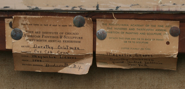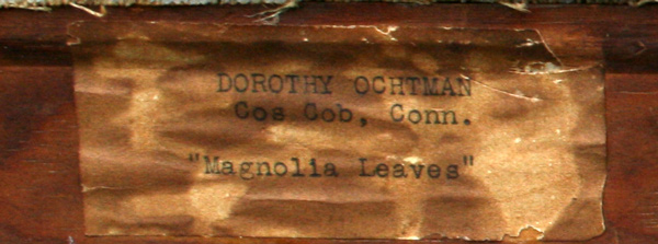 OCHTMAN, Dorothy, (American, 1892-1971): ''Magnolia Leaves'', OIL/Canvas, 30'' x 40'', signed, newer frame, 35'' x 45'', Grand Central Galleries, Smith College, Pennsylvania Academy of the Fine Arts and The Art Institute of Chicago exhibition labels verso.