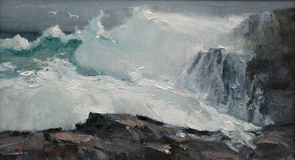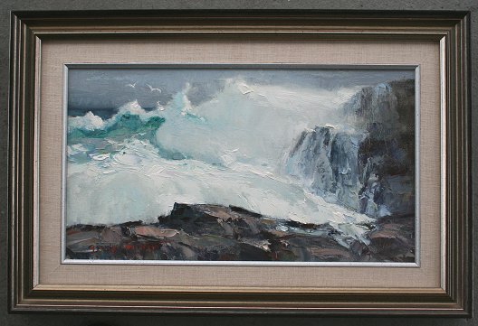 CARPENTER, George, (American, 1928-2006): Crashing Surf, OIL/Canvasboard, 10'' x 18'', signed, framed, 15'' x 23''.