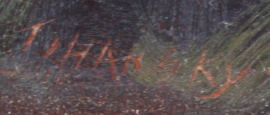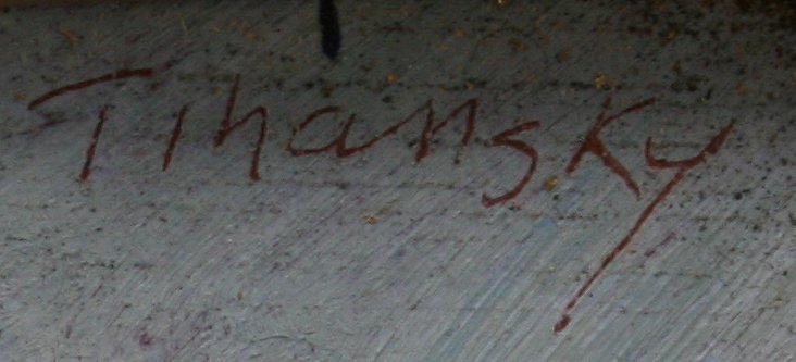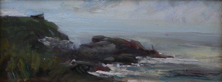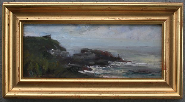 TIHANSKY, Theodore, (American, 20th C. ): ''Ocean Drive, Newport, RI'', OIL/Board, 7 1/2'' x 18'', signed twice, encased in later frame with some missing gilt, 12 1/2'' x 23'', signed titled and dated 1996 verso.
