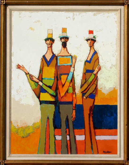 ADICKES, David, (American, 1927-): 3 Men Wearing Hats, OIL/Board, 40'' x 30'', signed, custom gilded frame with minor wear, 45'' x 35''.