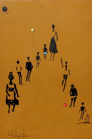 HOLLINGSWORTH, Alvin Carl, (American, 1928-2000): Composition with Figures, Mixed Media on paper, 17 1/2'' x 11 1/2'' sight size, signed, framed, 20 4/2'' x 18 1/2''.