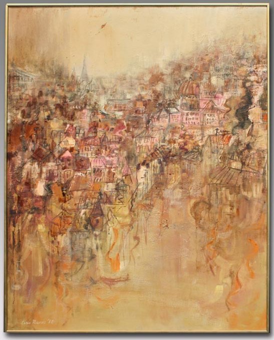 RANES, Chris, (American, 1929-2002): ''Vue de Paris'', abstract Parisian cityscape, 39'' x 31'', signed and dated '70, framed 40 1/2'' x 32 1/4'', signed and titled verso.