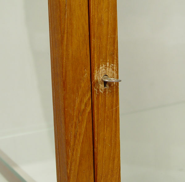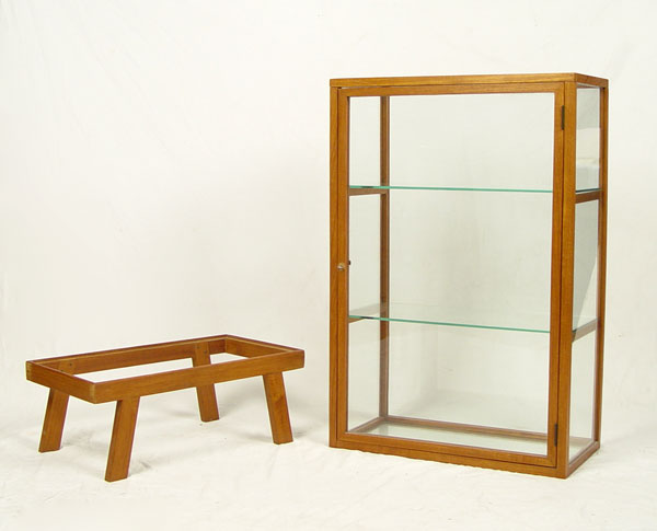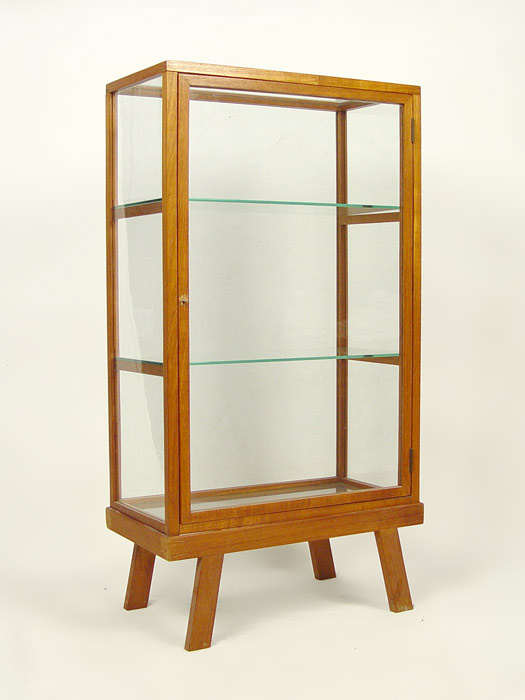 DANISH MODERN DISPLAY CABINET: 2 glass shelves. Case is removable from stand. See matching case previous lot. Measures 45'' h x 24'' x 12''