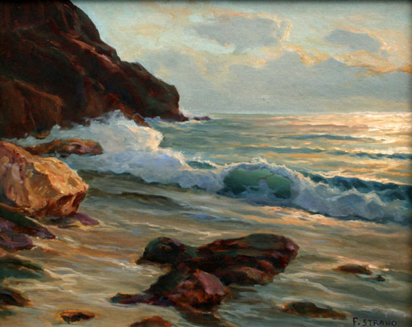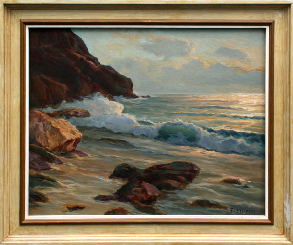 STRANO, Frank, (American, 20th C.): Coastal Sun, OIL/Canvasboard, 24'' x 30'', signed, painted frame, 30'' x 36''.