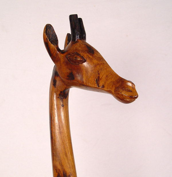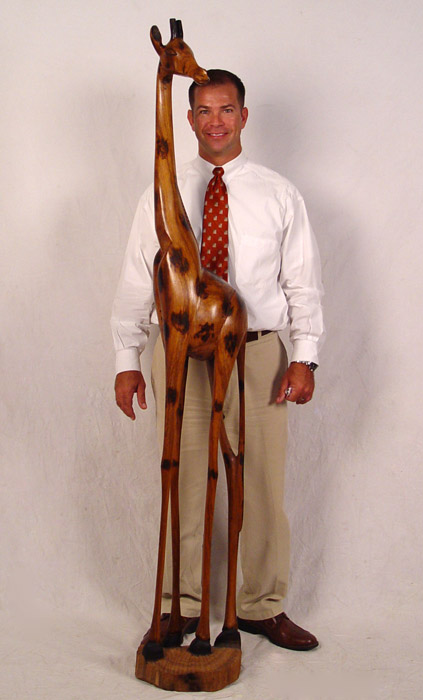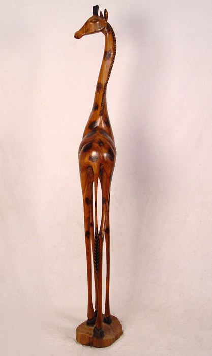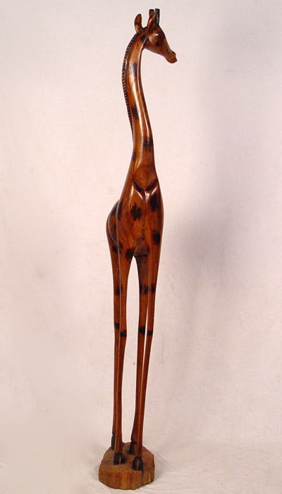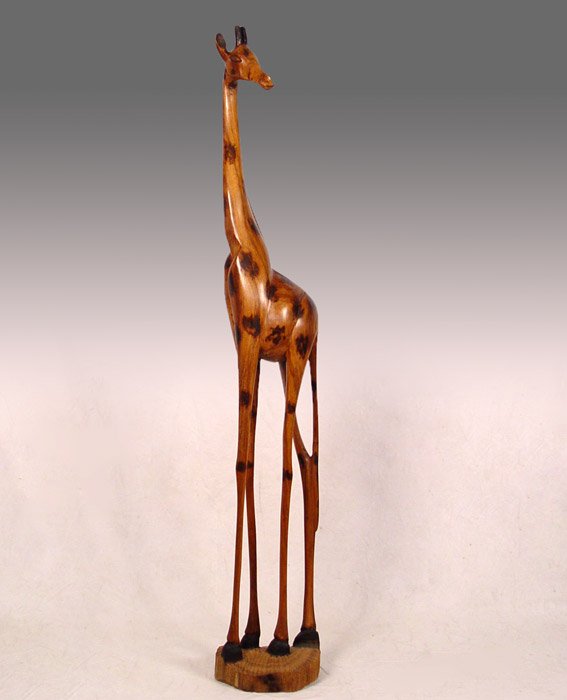 6 FT TALL CARVED WOOD GIRAFFE: Measures approx. 71 1/4'' h x 10 1/2'' x 8''