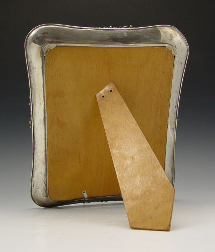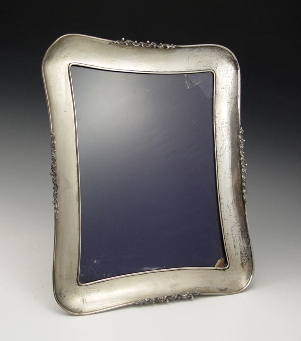 800 FINE SILVER EASEL BACK PICTURE FRAME: Applied decoration. Illegible makers hallmark. Measures 12 1/2'' x 10 1/4''. Approx 11.9 troy oz.