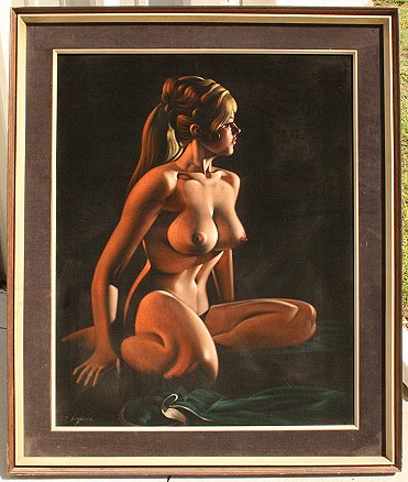 EXCEPTIONAL 60'S ERA NUDE OIL/VELVET: 36'' x 29'', illegibly signed, framed, 44'' x 37''.