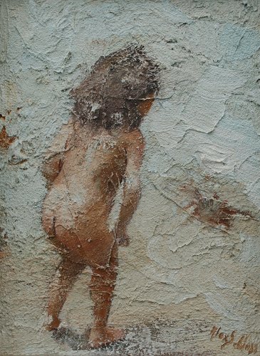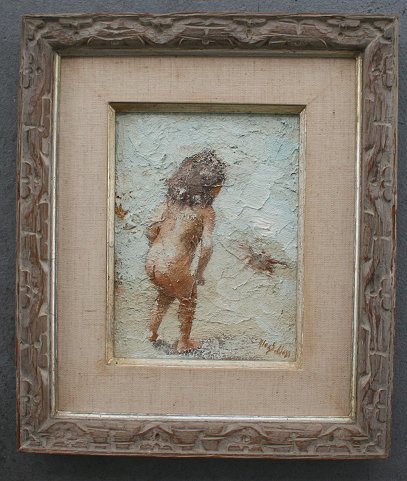 SCHLOSS, Alex, (American, 20th C.): ''LEXIE 2 1/2 YEARS'', Mixed Media Oil/Sand/Marble Dust Painted Frescoe, 12'' x 8'', signed, framed, 20'' x 17''. Painted for parents of this child in 1972 at the Plaza hotel