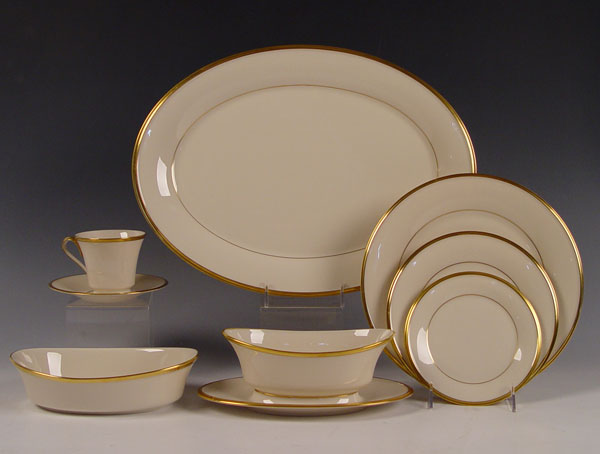 LENOX ''ETERNAL'' FINE CHINA: Approx. 49 pieces to include 8 dinner plates, 16 salad plates, 8 bread plates, 8 cups, 5 saucers, gravy , 2 open vegetable and a large platter.