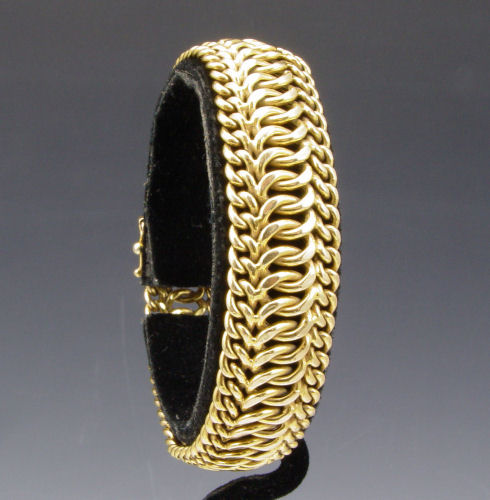 14K YELLOW GOLD BRACELET: An intricate Italian 14K yellow gold bracelet. Safety clasp. 7 1/2'' long. Weight 17.1 grams.