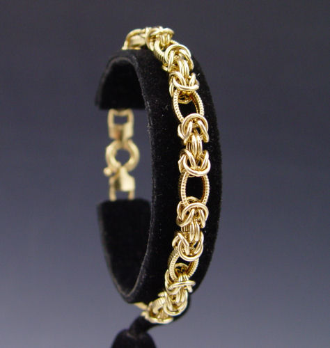 18K FANCY BYZANTINE BRACELET: 18K yellow gold Byzantine links with oval links. Hollow. Giant spring ring clasp. Weight: 9.0 grams. Length: 8''