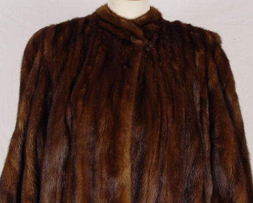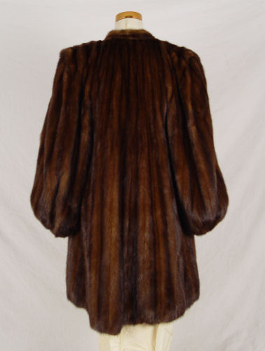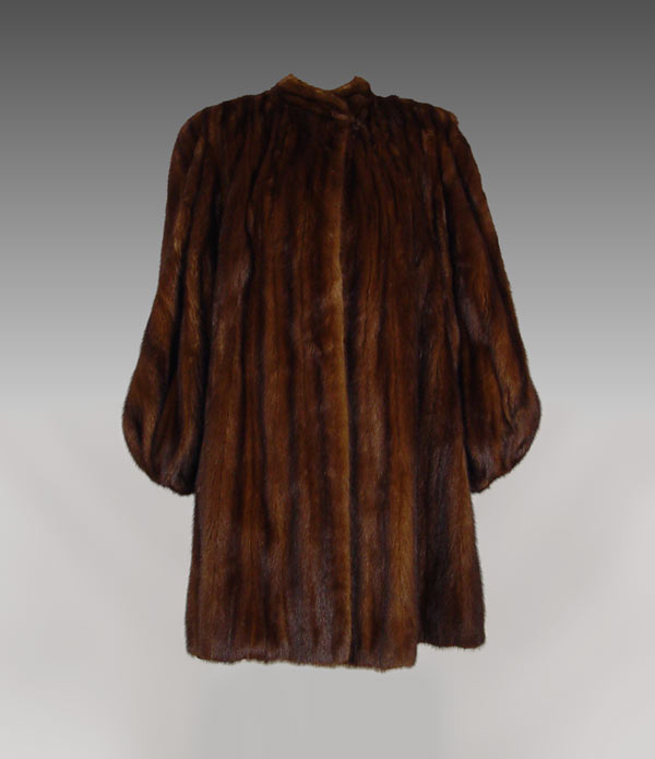 FULL LENGTH MINK COAT: Large size swing coat. 39'' length 18'' shoulder to shoulder, 24'' sleeve. Full puffy sleeves gathered at the cuff.