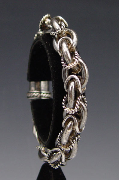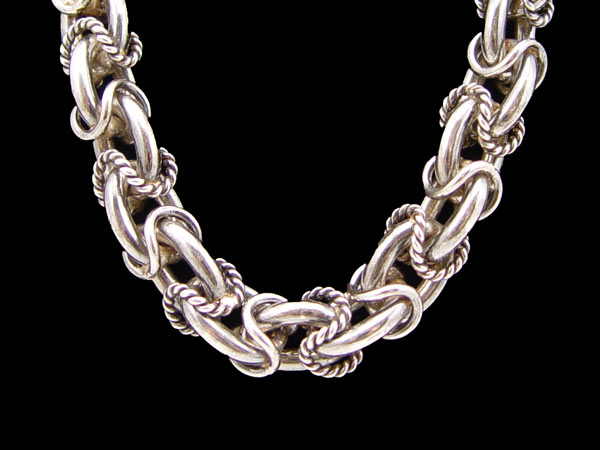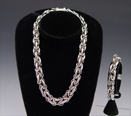 CHUNKY LINK STERLING NECKLACE AND BRACELET: Marked 925 BA inside the secure press and twist closures. Necklace 19''l., bracelet 9 1/4''l. Approx 12.5 troy oz.