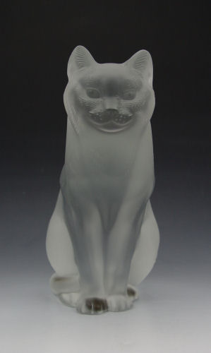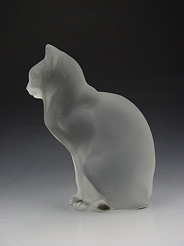 LALIQUE CRYSTAL ''CHAT ASSIS'' SITTING CAT FIGURE: Signed Lalique France. 8 1/4'' h. x 6 1/2''