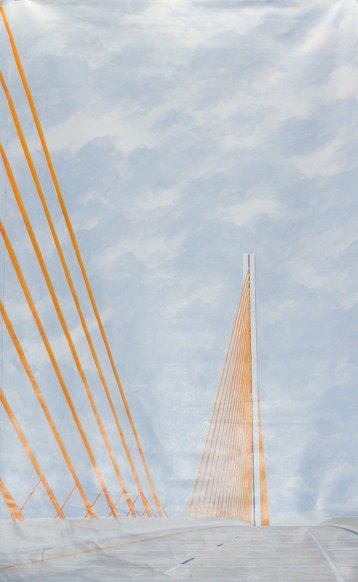 DURICK, Alice, (American, 20th C): Sunshine Skyway Bridge, Florida, OIL/C, signed and dated 1989 verso, 63'' x 39 1/4'', unstretched.