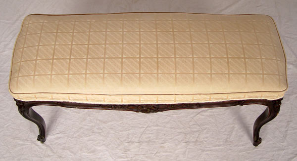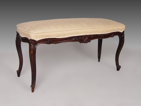 FRENCH CARVED MAHOGANY BENCH: 20'' h. x 29'' x 15''