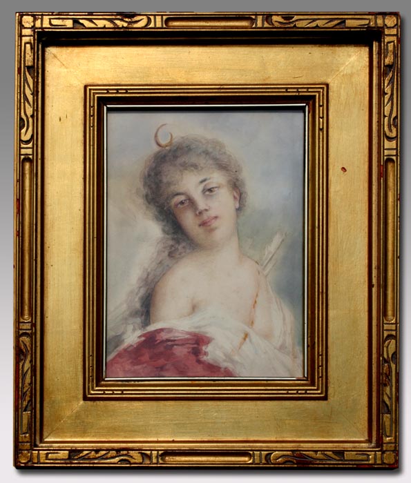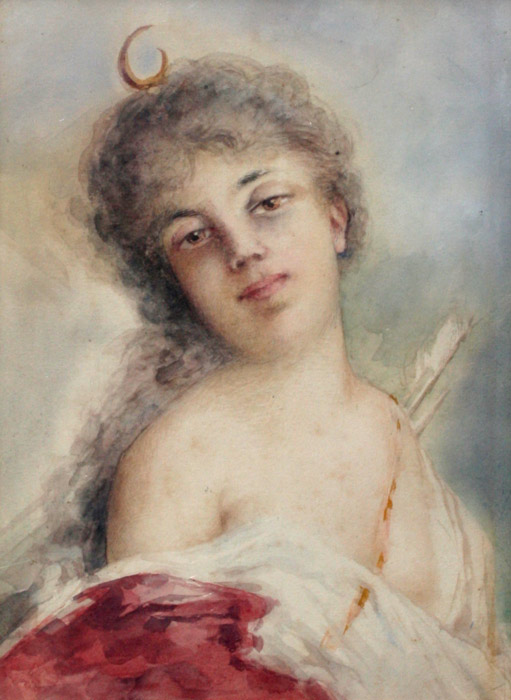 WATERCOLOR of the Goddess Diana With Quiver of Arrows, Circa 1930: Watercolor, 11'' x 8 1/4'', later frame, 19'' x 16''.