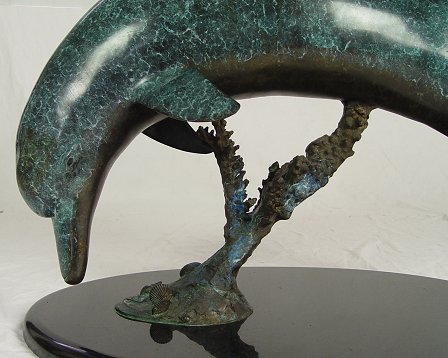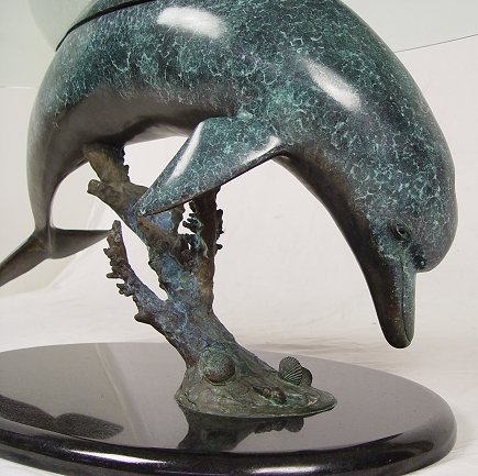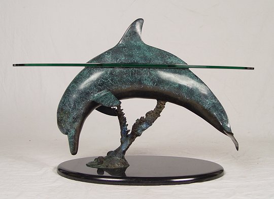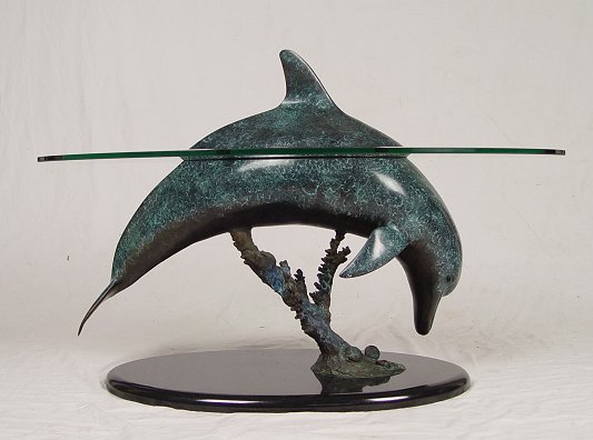 DALE EVERS PATINATED BRONZE ''HATTERAS'' DOLPHIN GLASS TOP TABLE: 26'' h., 30'' w., 40'' w. with glass, signed and dated '94, numbered 48/98. SOLD WITH ORIGINAL RECEIPT AND COA...over $9,000 in 1997!!