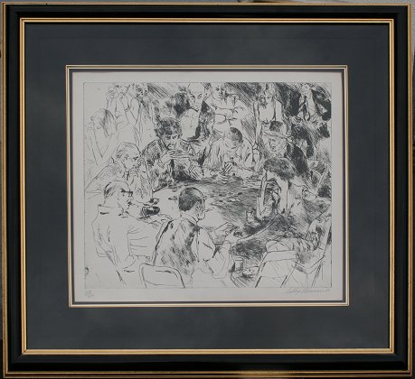 NEIMAN, Leroy, (American, 1927-): ''Stud Poker'', Seated Neiman, Diana Ross, Frank Sinatra, etc., Etching, 22'' x 26'' sight size, pencil signed, #248 of 250, custom black lacquer frame, 36'' x 40''. Est. $800/1200**