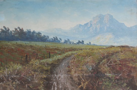 HUERTAS, Segundo, (Mexican, 20th C.): Meadow Landscape with Mountain Range in the Distance, OIL/Canvas, 24'' x 36'', signed, unframed.