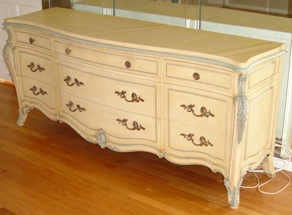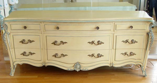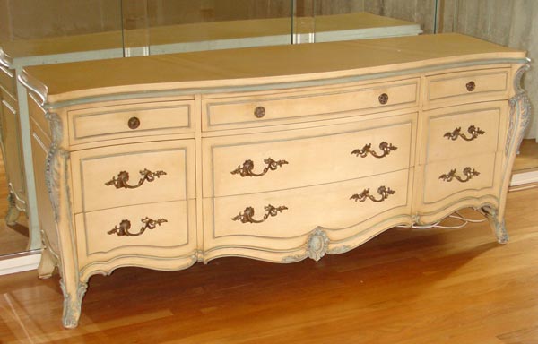 KARGES ITALIAN STYLE TRIPLE DRESSER: Original painted finish. Measures 32 1/2'' h. x 76 1/2'' x 21''