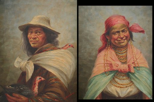 MONCAYO, H., (Ecuador, 1895-): Pair of Portraits, OIL/Canvas, Man is 22'' x 17'', framed, 26'' x 21''; Female, 20'' x 16'', signed, framed, 23'' x 19''.