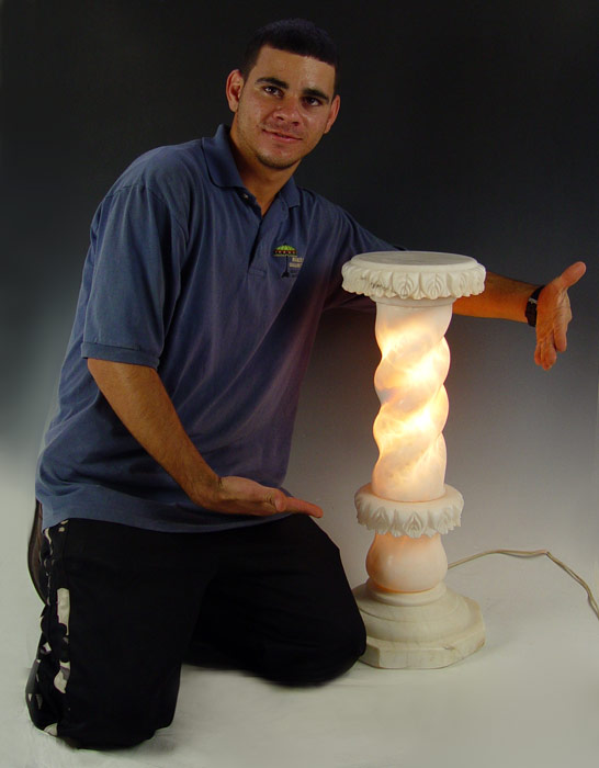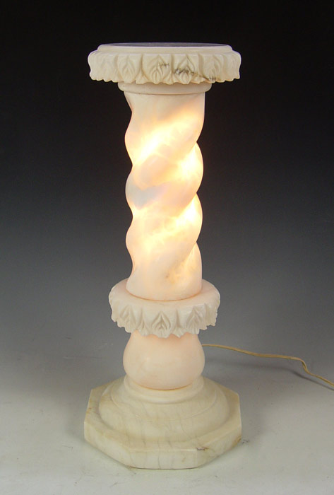 ILLUMINATED ALABASTER PEDESTAL: Lights from interior. 25 1/2'' h. x 10 3/4'' base dia.