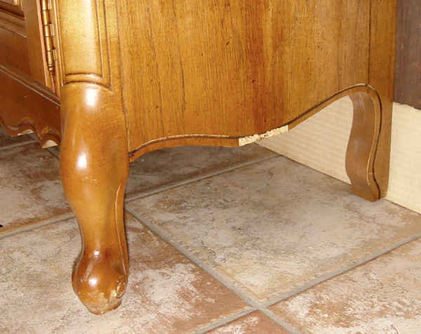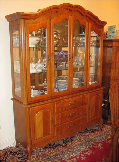 STANLEY FURNITURE COUNTRY FRENCH STYLE CHINA CABINET: Illuminated mirrored back top with 2 shelves over 3 drawer 2 door base. Measures 83 1/2'' high x 64'' x 17''.