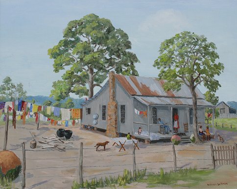 LEBRON, Warree, (American, 1910-): ''Spring Cleaning'', OIL/Canvas, 24'' x 30'', signed, framed, 25 1/2'' x 31 1/2'', bio verso. Exhibited with the Alabama Art League, the Georgia Art Association, the Southern States Art League, and the Birmingham Art Club, Director of the Dixie Art Colony. (Askart) Est. $600/900**