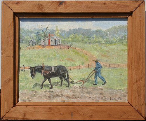 LEBRON, Warree, (American, 1910-): Ploughing Scene, OIL/Canvas/Masonite, 8'' x 10'', signed, framed, 10 1/2'' x 14''. Est. $300/500**