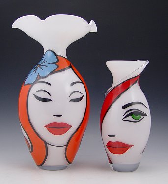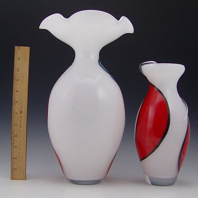 2 ROSENTHAL ARTIST SIGNED MORE GLASS VASES: 14 1/2'' h. & 10'' h., both signed, marked underneath.