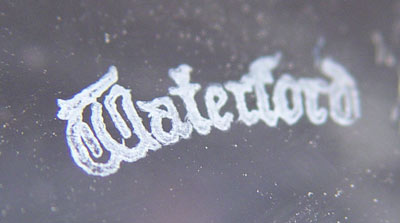 LARGE WATERFORD BANANA BOWL: Measures 9 3/8'' high x 13 1/8'' x 6''. Note tiny flea bite on rim.
