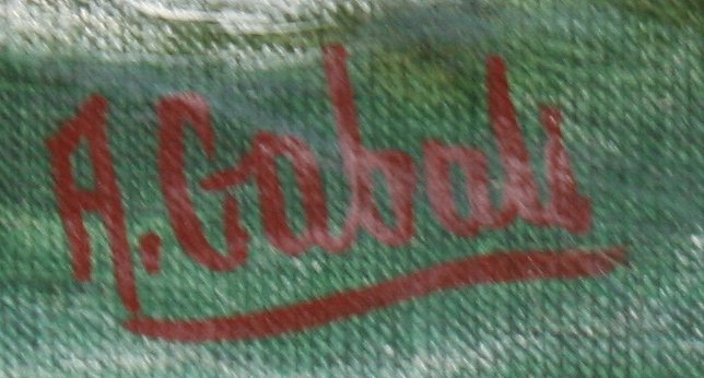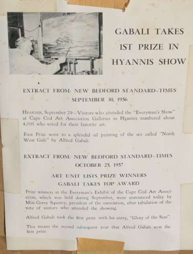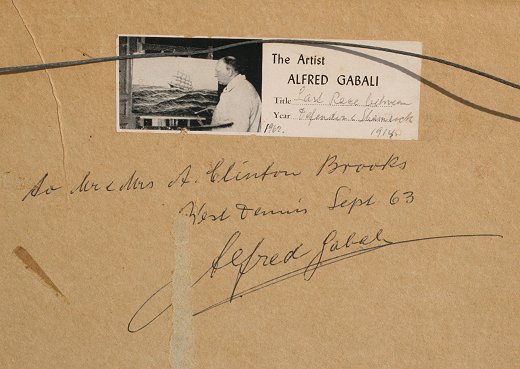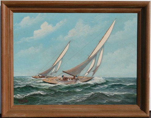 GABALI, Alfred, (American, 1906-): ''Last Race Between Defender and Shamrock, 1914'', OIL/CanvasBoard, 18'' x 24'', signed, framed, 22'' x 28'', artist's bio verso, dated 1962. Est. $300/500**