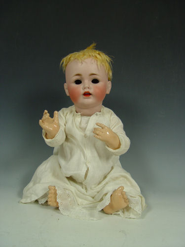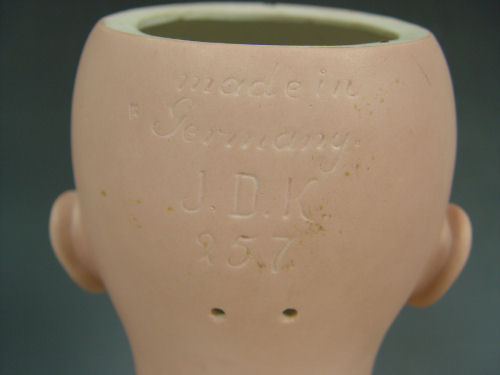 26'' KESTNER BISQUE HEAD DOLL: Head marked ''Made in Germany'' / J.D.K. / 257. Worn wig on bisque head, open mouth. The eyes and weight are separated from the doll, but are included. 26'' tall.