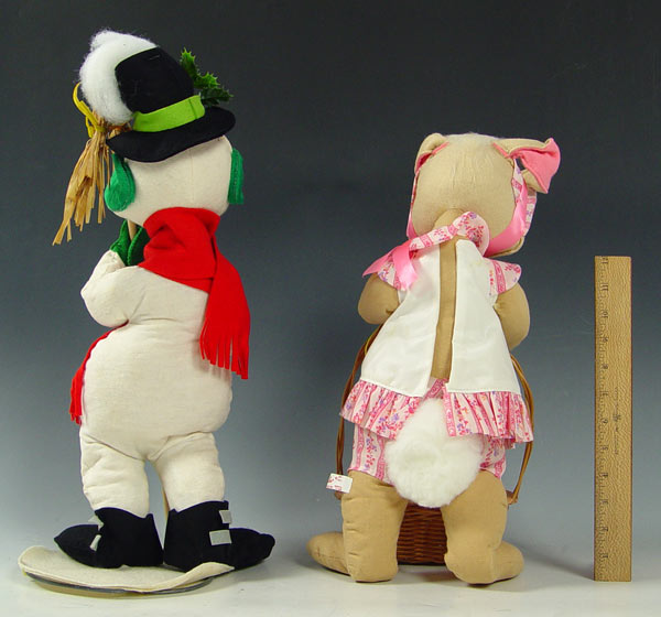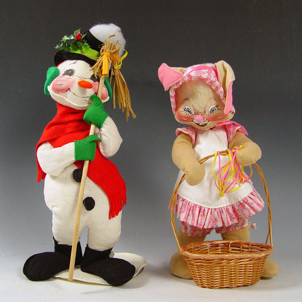 2 LARGE ANNALEE HOLIDAY DOLLS: Easter and Christmas felt dolls made in New Hampshire, approx. 18''h. and 20 3/4''h.