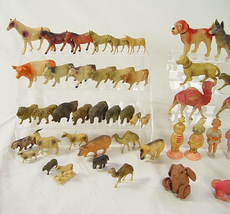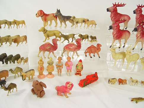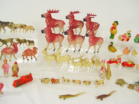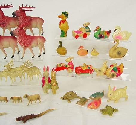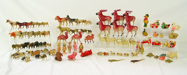 MONUMENTAL COLLECTION OF CELLULOID ANIMALS: Massive collection to be sold as a lot. Largest reindeer measures 7'' h. x 8''.