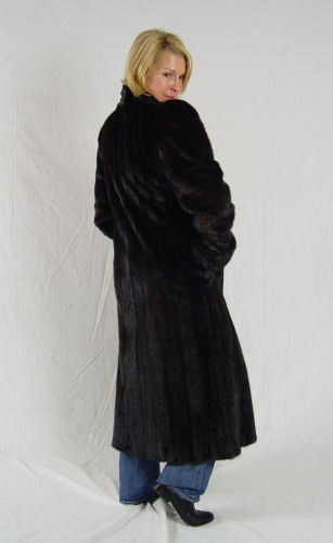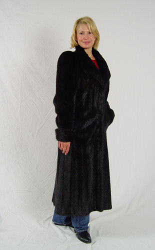 FULL LENGTH MINK COAT: Fine coat with rolled cuffs, soft and supple. 51'' length, 19'' across the shoulders.