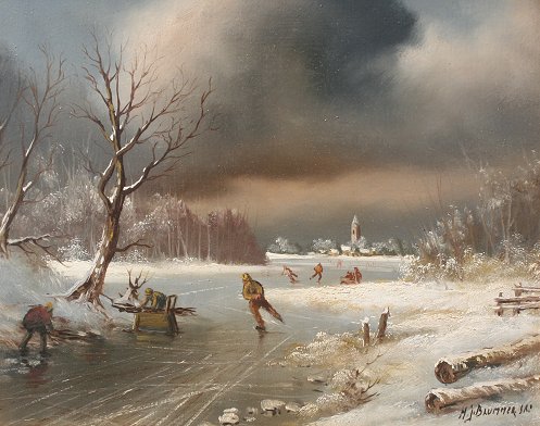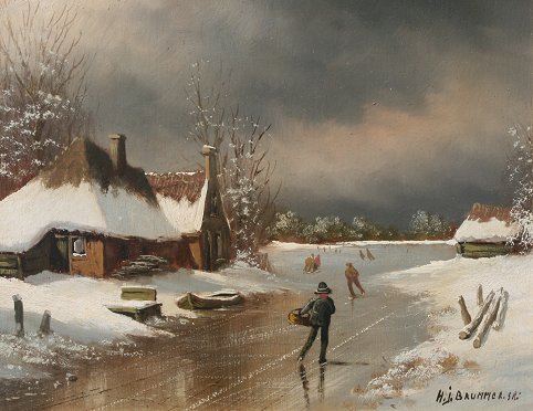 PAIR OF DUTCH WINTER SKATER PAINTINGS: Oils/Board, 9 1/2'' x 12'', signed H.J. Blummer Sr, framed, 9 1/2'' x 14 1/2''. Est. $300/500**