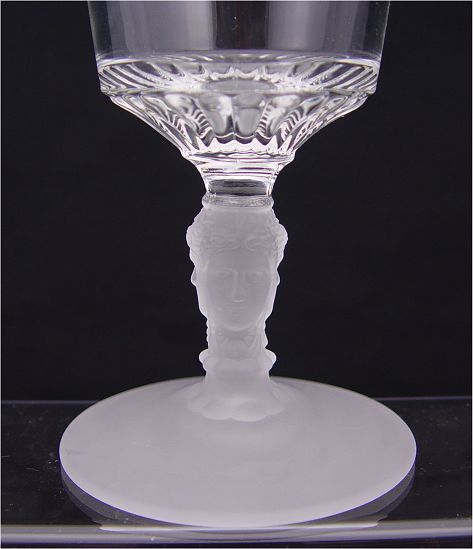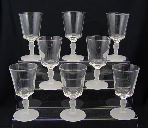 SET OF 8 DUNCAN EAPG ''THREE FACE'' GOBLETS: Also known as The Sisters. High florescence under a black light. 6 1/2'' tall.